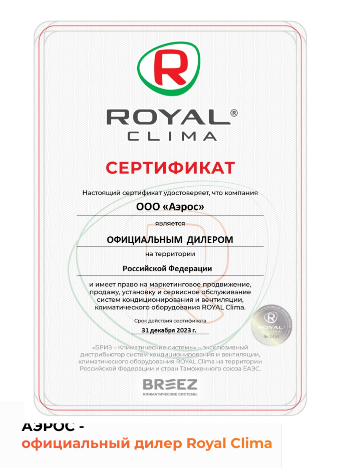 FIATO RCF- 70 Lux WiFi Энергоэффективная приточно-вытяжная вентиляционная установка ROYAL Clima