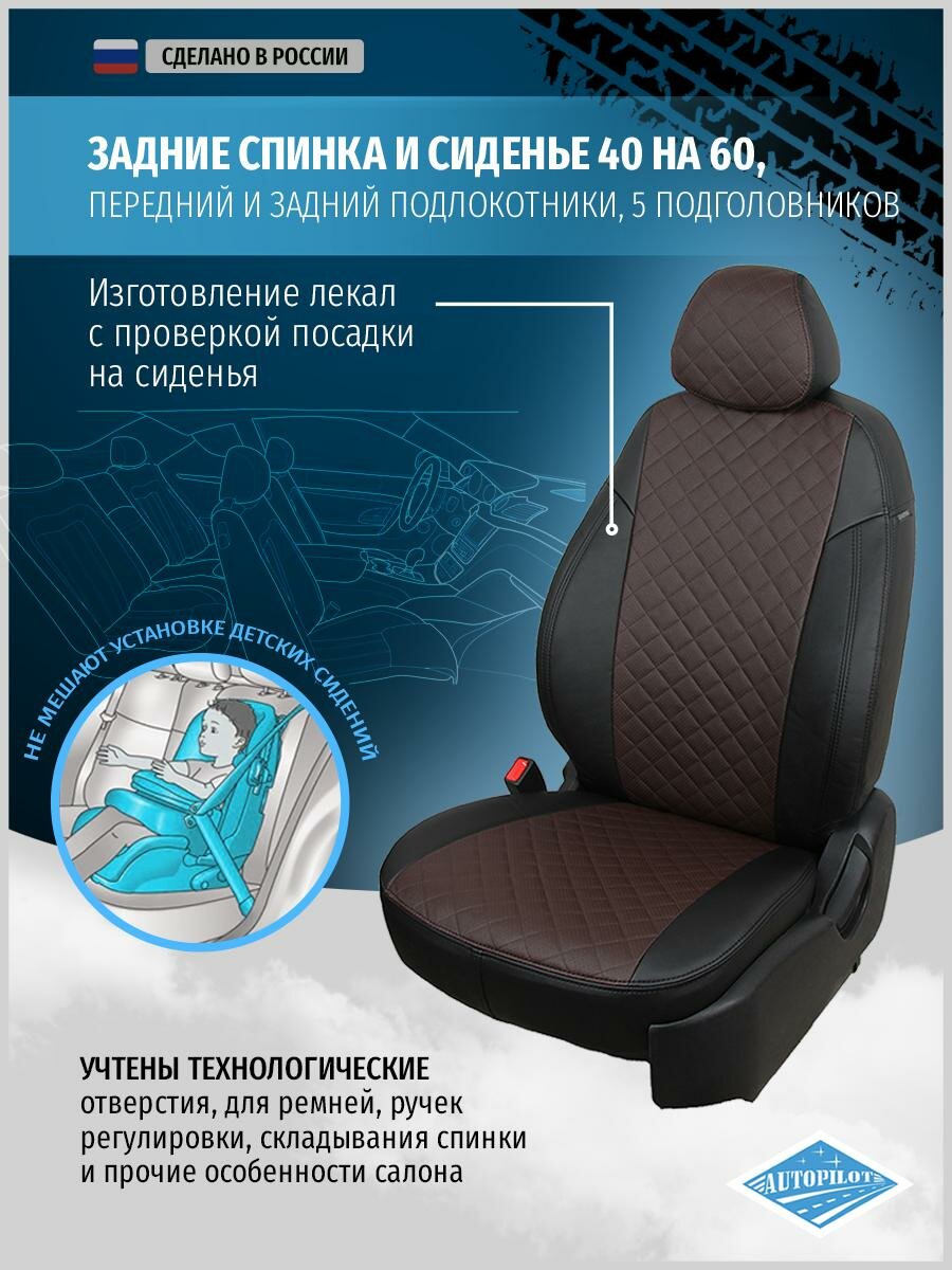 Чехлы на автомобильные сидения Автопилот для Mitsubishi Outlander III с 12г. (Экокожа ромб, Коричневый + Коричневый)