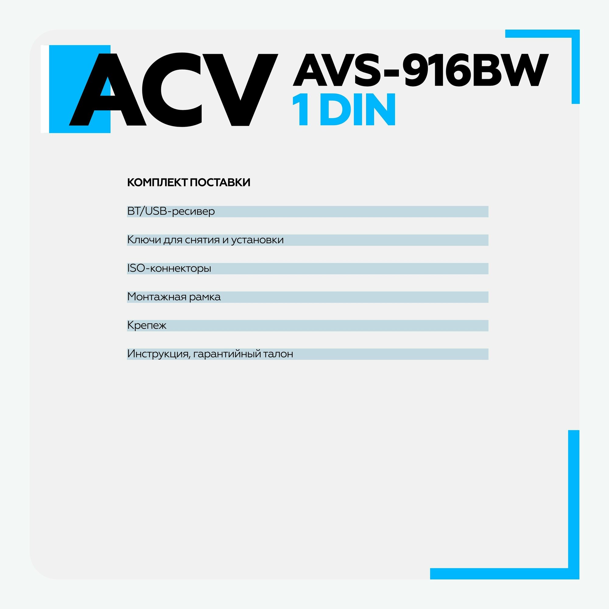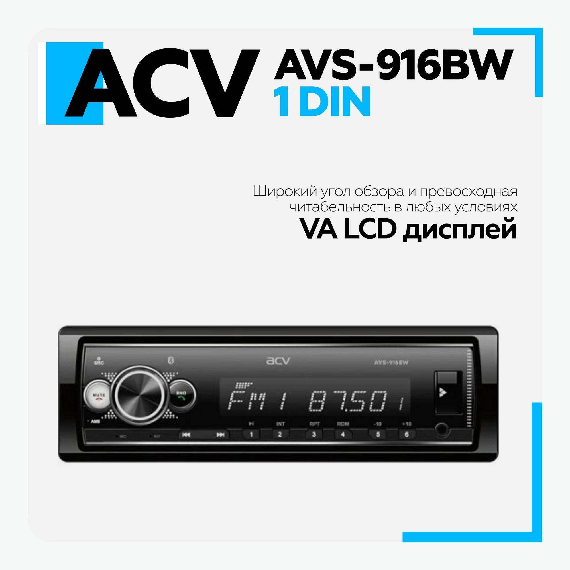 Автомобильный ресивер с Bluetooth, поддержкой ACV RC и ACV Control, белая подсветка ACV AVS-916BW