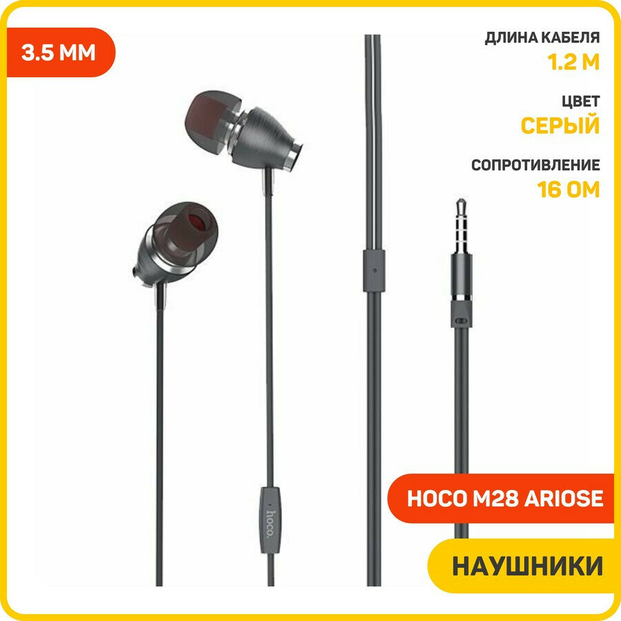 Наушники Hoco M28 Ariose (3.5 мм), серый