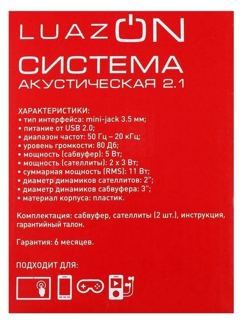 Купить Luazon Home Компьютерные колонки 2.1 LuazON LPCK-02, 2x3Вт, сабвуфер 5Вт, 80дБ, Jack 3.5, USB, синяя