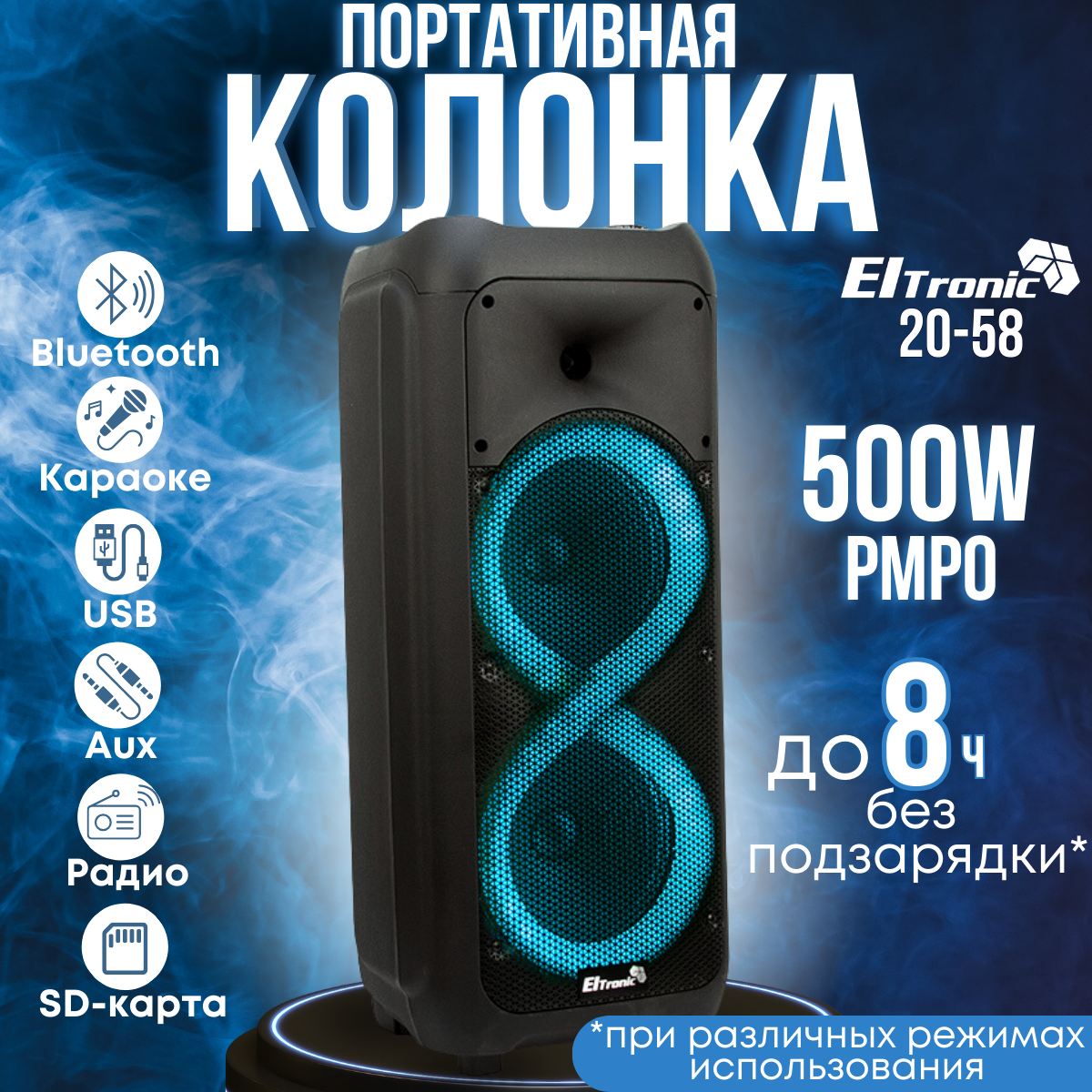 Акустическая беспроводная караоке блютуз колонка ELTRONIC 20-58 DANCE BOX 500