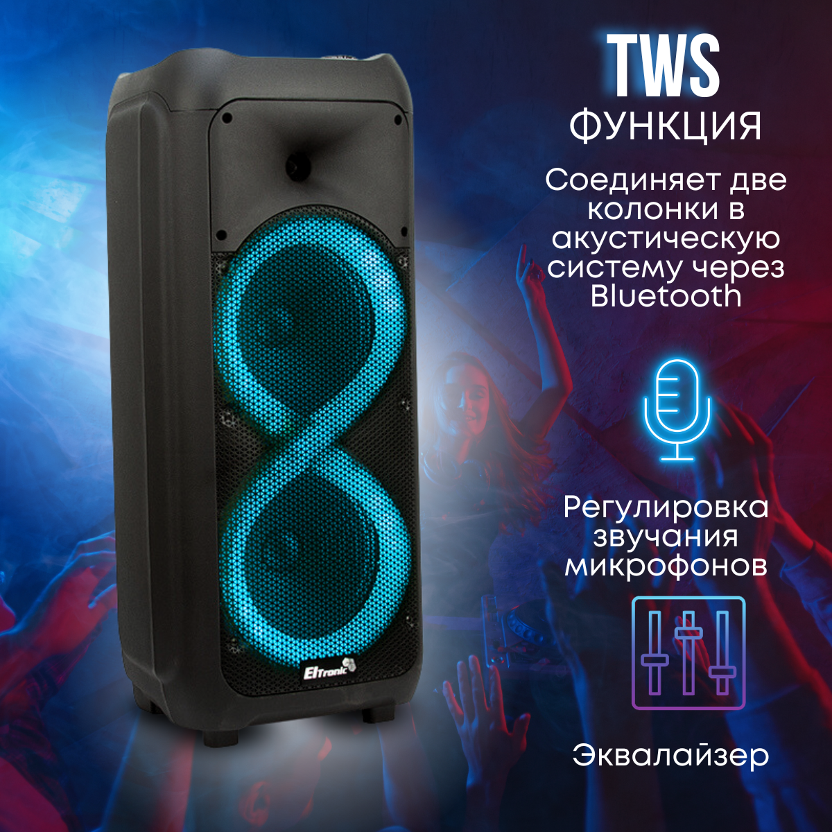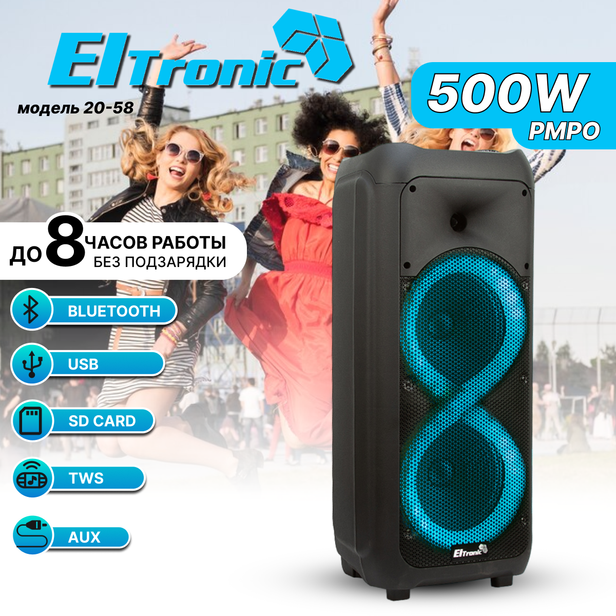 Акустика портативная Eltronic Колонка 08" (20-58 DANCE BOX 500) динамик 2шт/8" черная ElTRONIC с TWS
