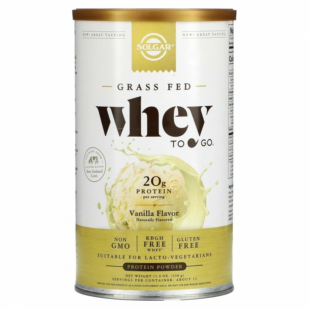 Solgar, Grass Fed Whey To Go, Protein Powder, Vanilla, 11.9 oz (338 g)