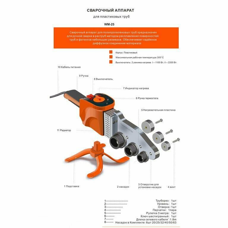 Паяльник для труб TIM WM-25 (20-63мм) 2200Вт интересное: