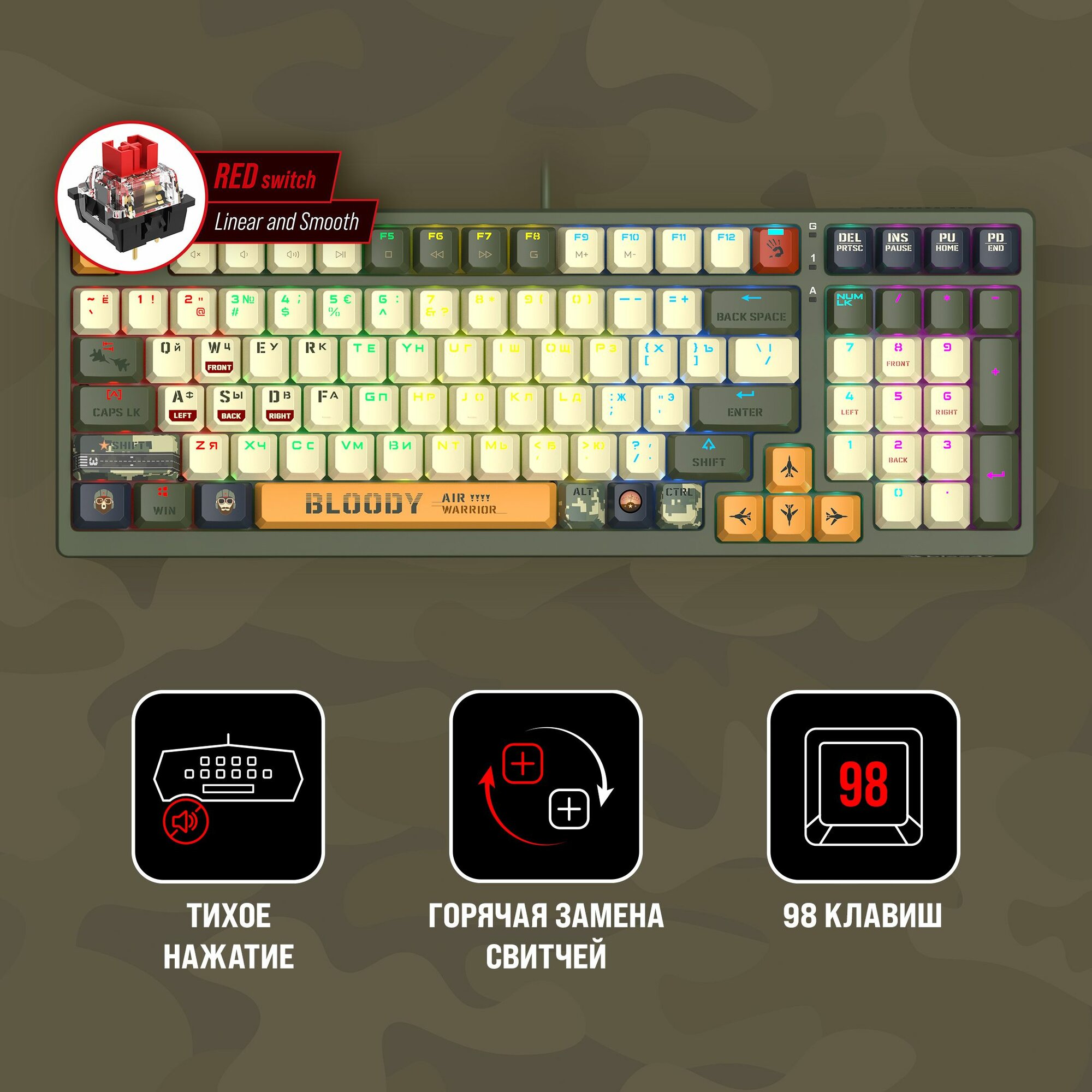 A-4Tech Клавиатура проводная A4Tech Bloody S98 Aviator green механическая, USB, for gamer, LED S98 AVIATOR