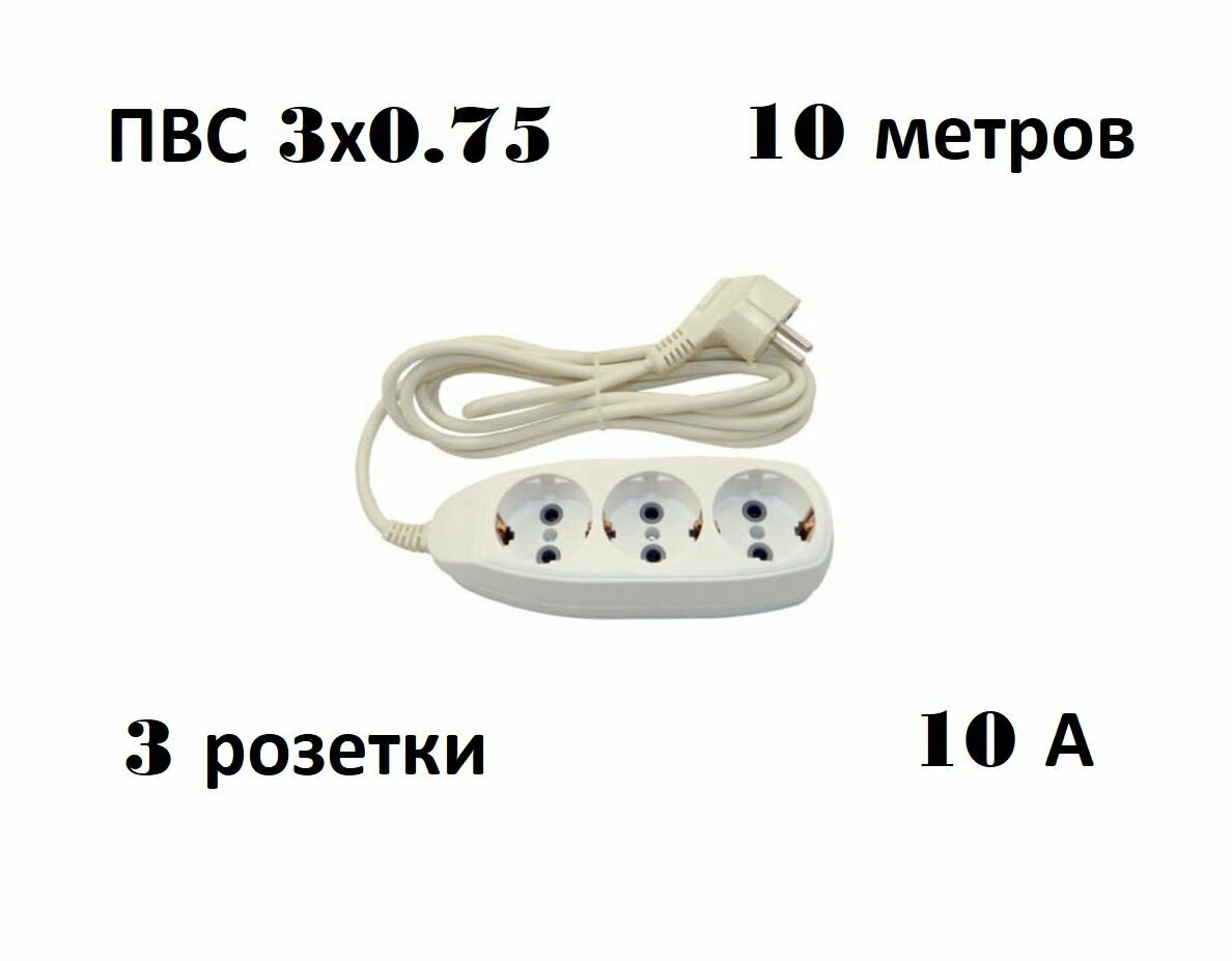 Сетевой удлинитель джетт РС-3 с заземлением. ( ПВС 3*0,75 )10 м.