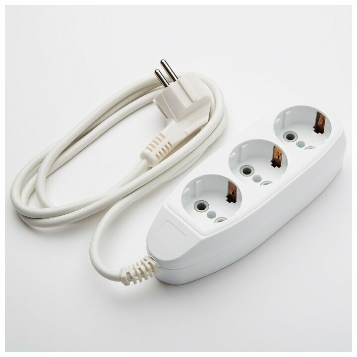 Купить Удлинитель Jett 155-639 РС-3 с заземлением (ПВС 3х0.75), 3 розетки, с/з, 16А / 2200 Вт белый 10 м 50 мм 170 мм 50 мм 3