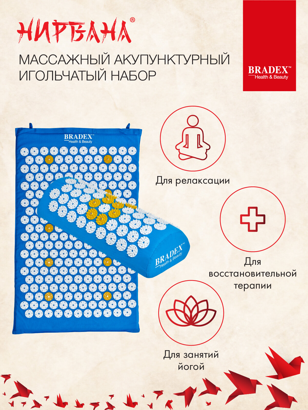 Массажный акупунктурный игольчатый набор Нирвана с магнитами, Bradex, аппликатор Кузнецова, / Массажный коврик + валик + сумка,