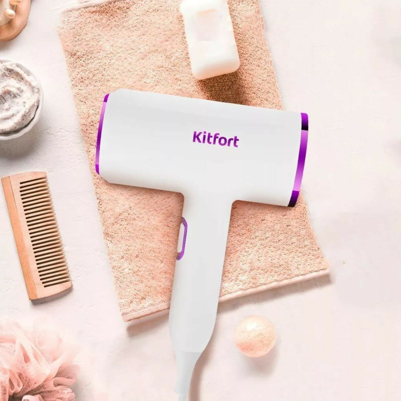 Фен Кт-3217, 1800 Вт, 2 скорости, 3 температурных режима, белый-фиолетовый Kitfort 9814335 .