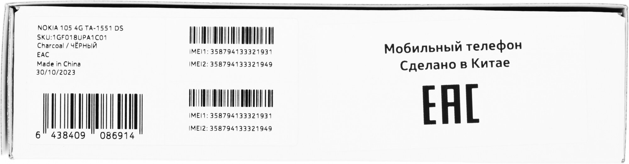 Мобильный телефон NOKIA 105 TA-1557 DS EAC CHARCOAL
