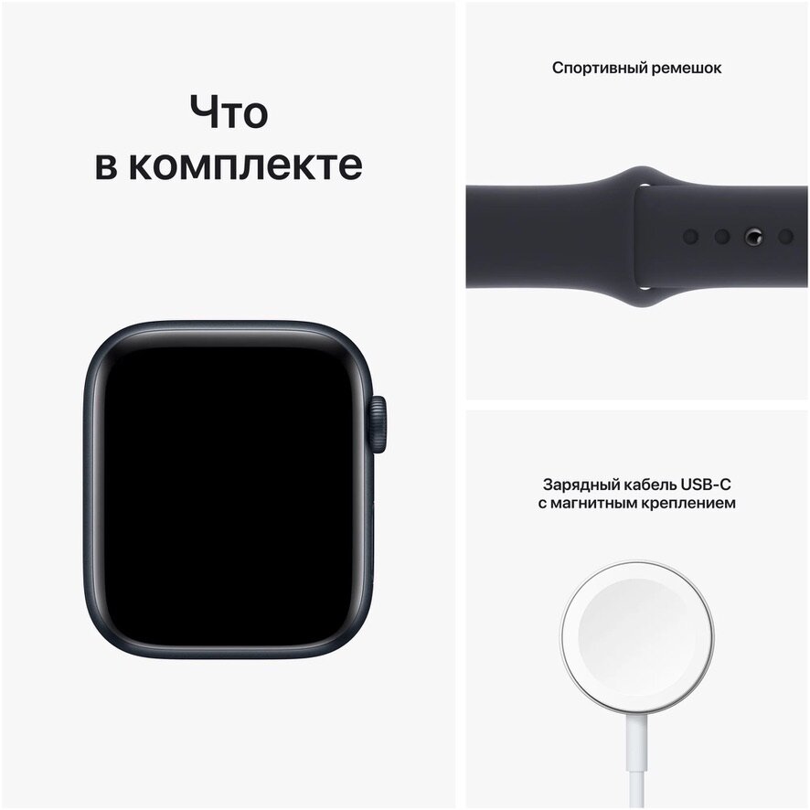 Часы Apple Watch Series 9 GPS 41mm Midnight Aluminium Case with Midnight Sport Band S/M, Корпус из алюминия цвета «полночно-черный», спортивный ремешок черного цвета 41мм S/M