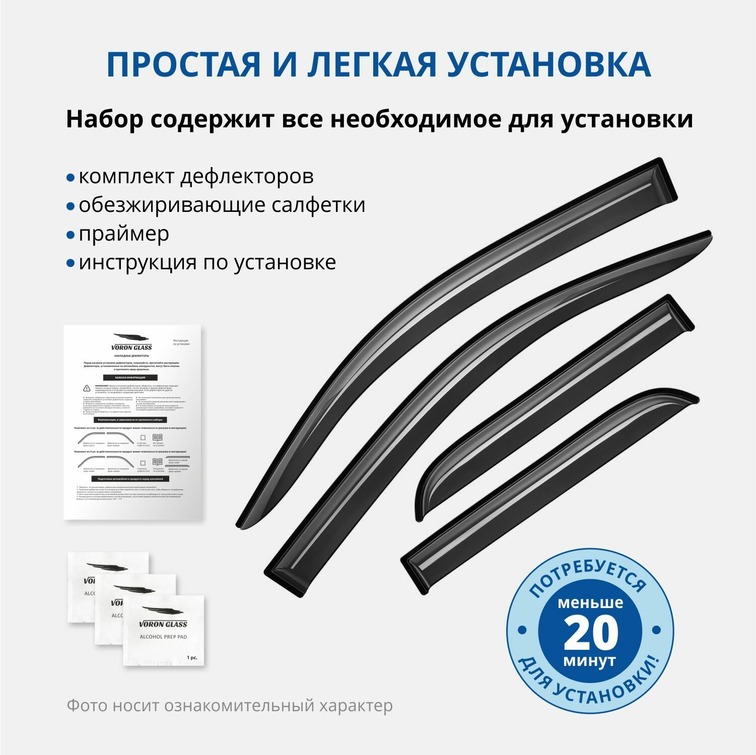 Комплект Дефлекторов Серия Corsar Hyundai Matrix 2001-2010 /Хетчбек/Накладные/Скотч/К-Т 4Шт./ Voron Glass арт. DEF00519