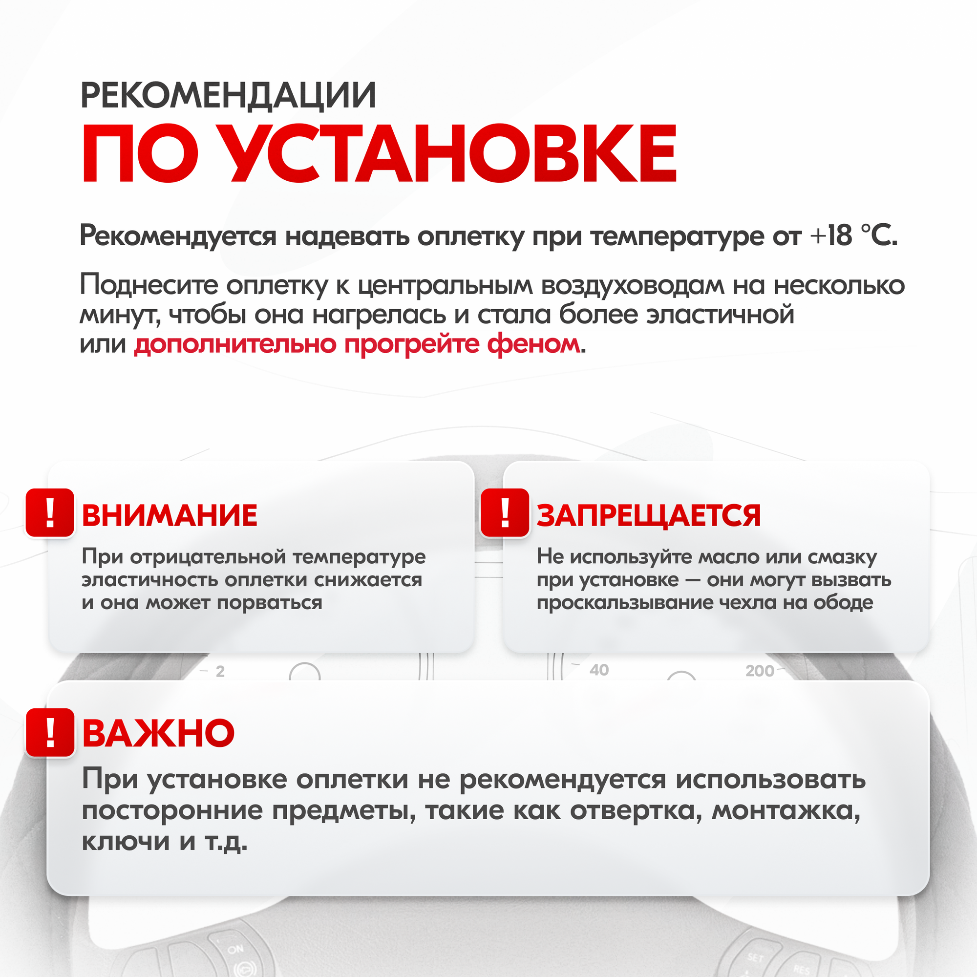 | Дополнительная информация | Рекомендации производителей: выбирайте оплётку под размер вашего рулевого колеса. Неверно выбранный размер может стать причиной проскальзывания оплётки или привести к невозможности снять или надеть её на руль. |