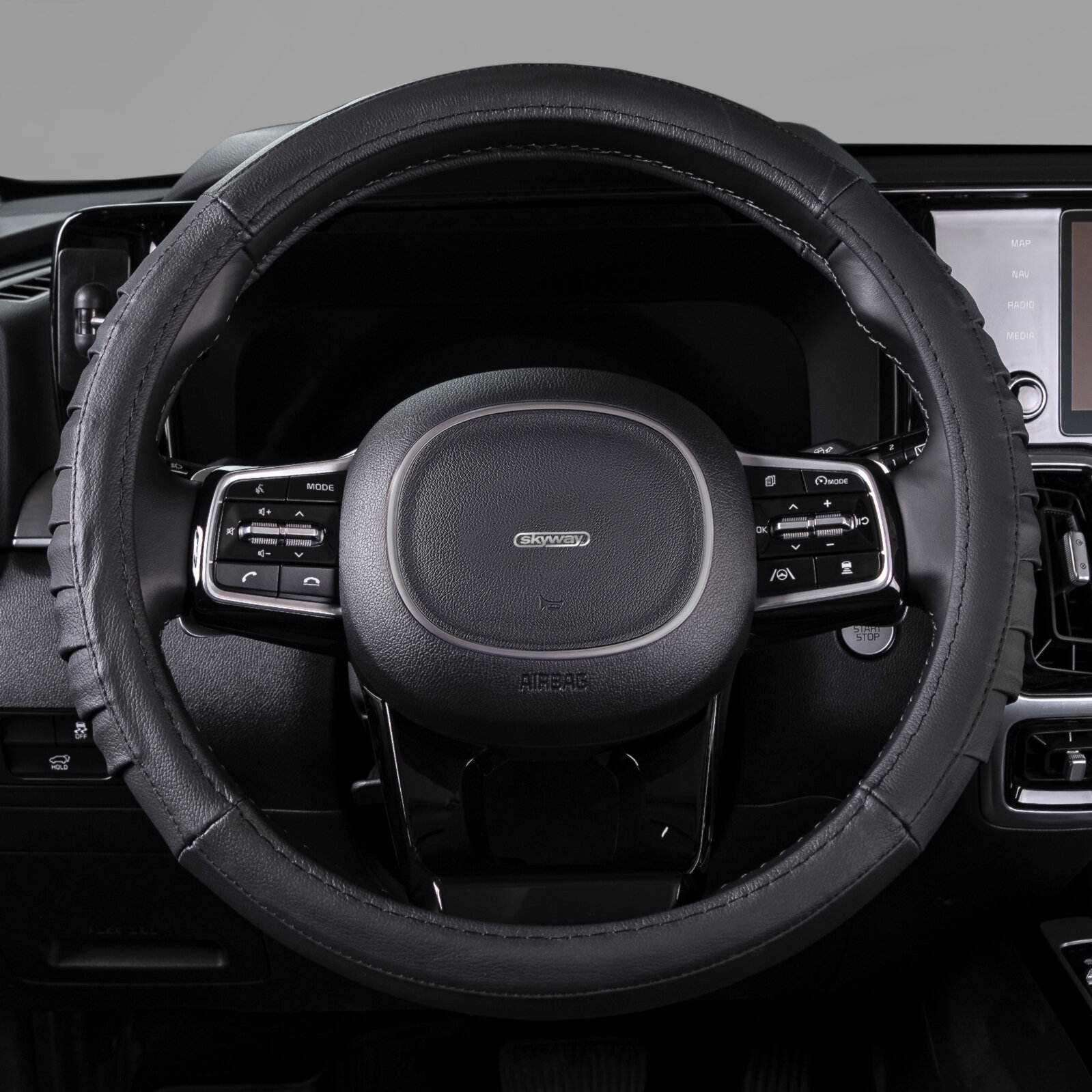 Оплетка на руль Real-5 SKYWAY M (37/38/39 см) серый кожа, S01108009