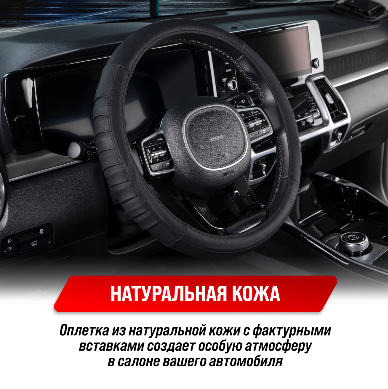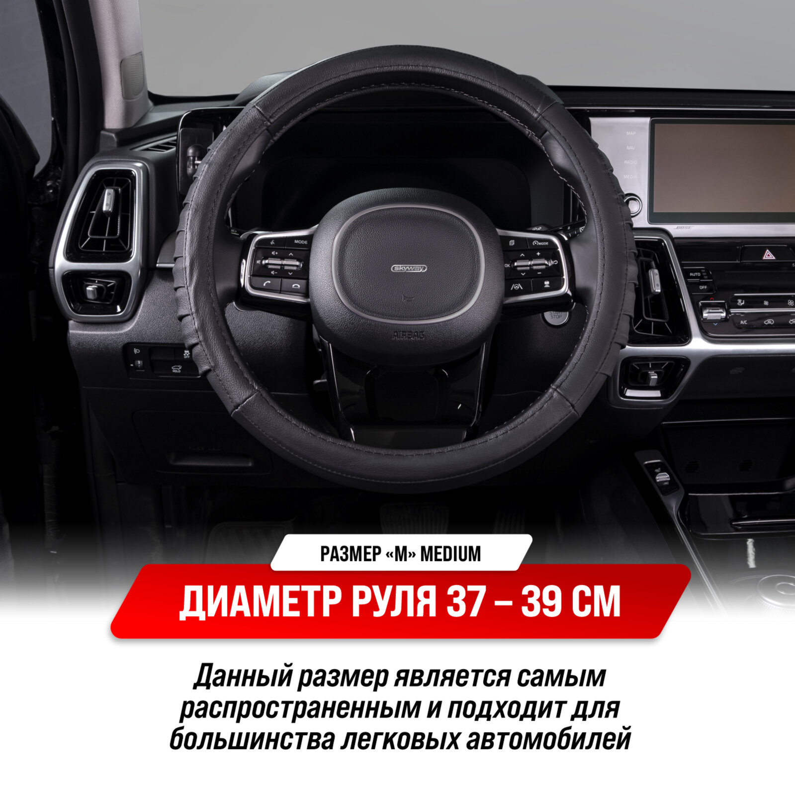 Оплетка на руль M "SKYWAY" Real-5 натуральная кожа, черный SKYWAY S01108008 | цена за 1 шт