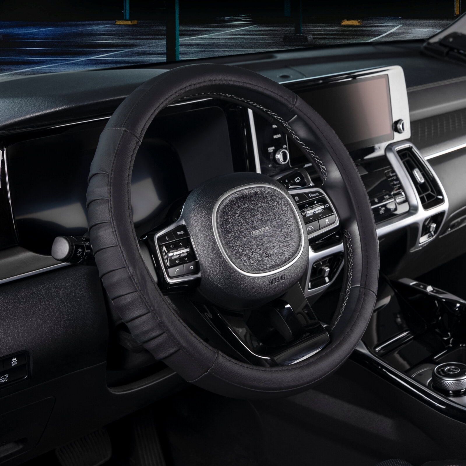 Оплетка на руль Хендай Сантафе 3 (Hyundai Santafe 3), М(37-39см), черный