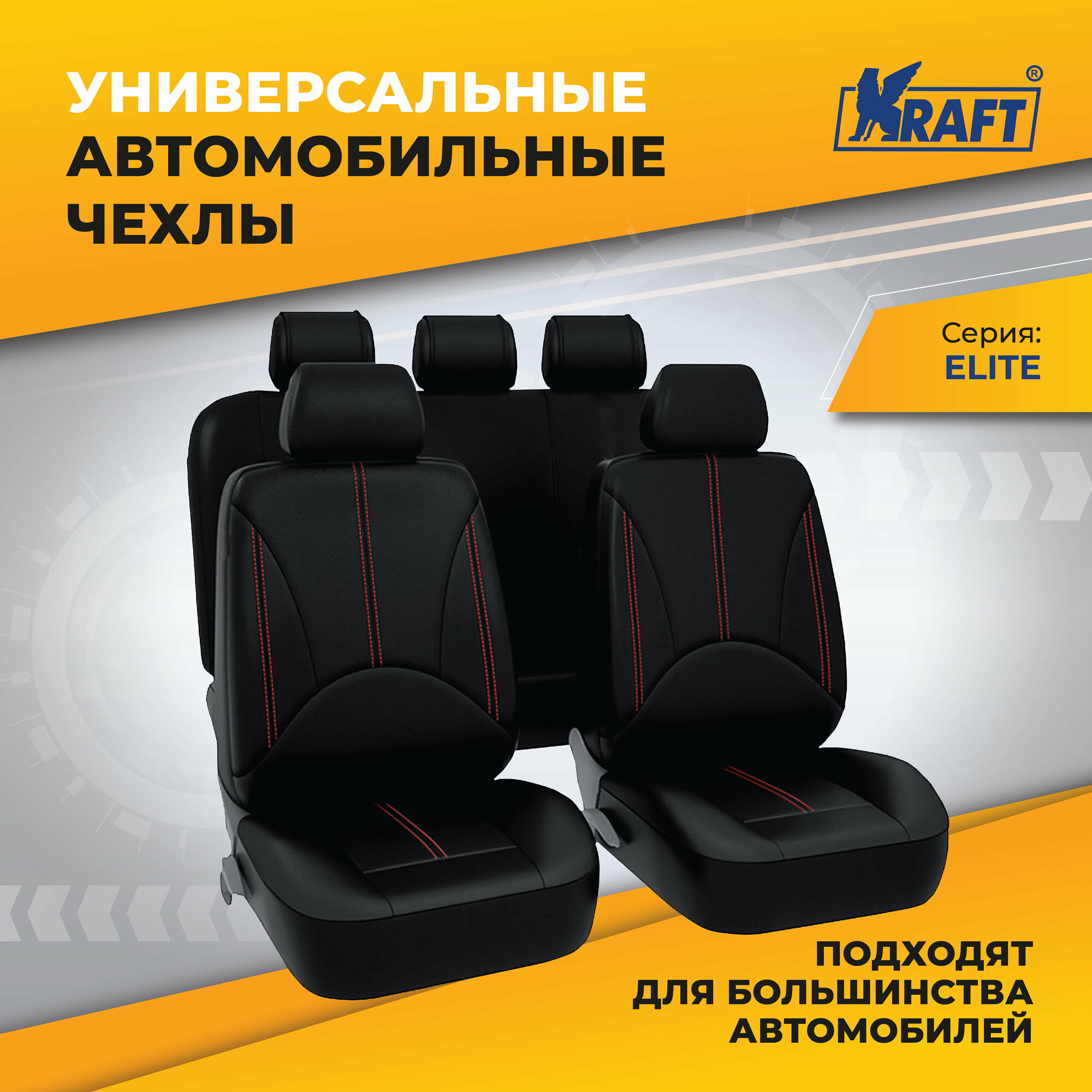 Чехлы Универсальные "Elite", Экокожа, Srs Airbag, 11 Предметов, Поролон 3Мм, 4 Молнии Kraft арт. KT835632
