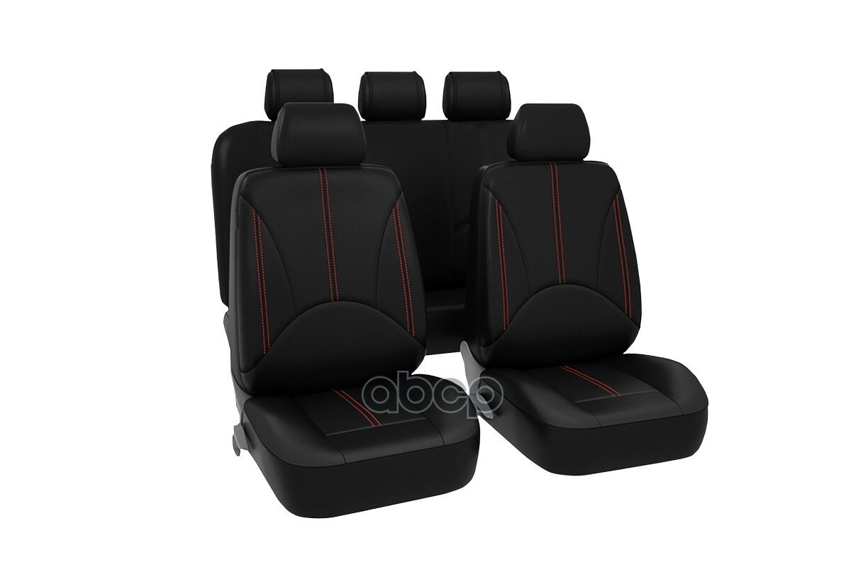 Чехлы Универсальные "Elite", Экокожа, Srs Airbag, 11 Предметов, Поролон 3Мм, 4 Молнии Черные/Красная Строчка Kraft арт. KT 83...