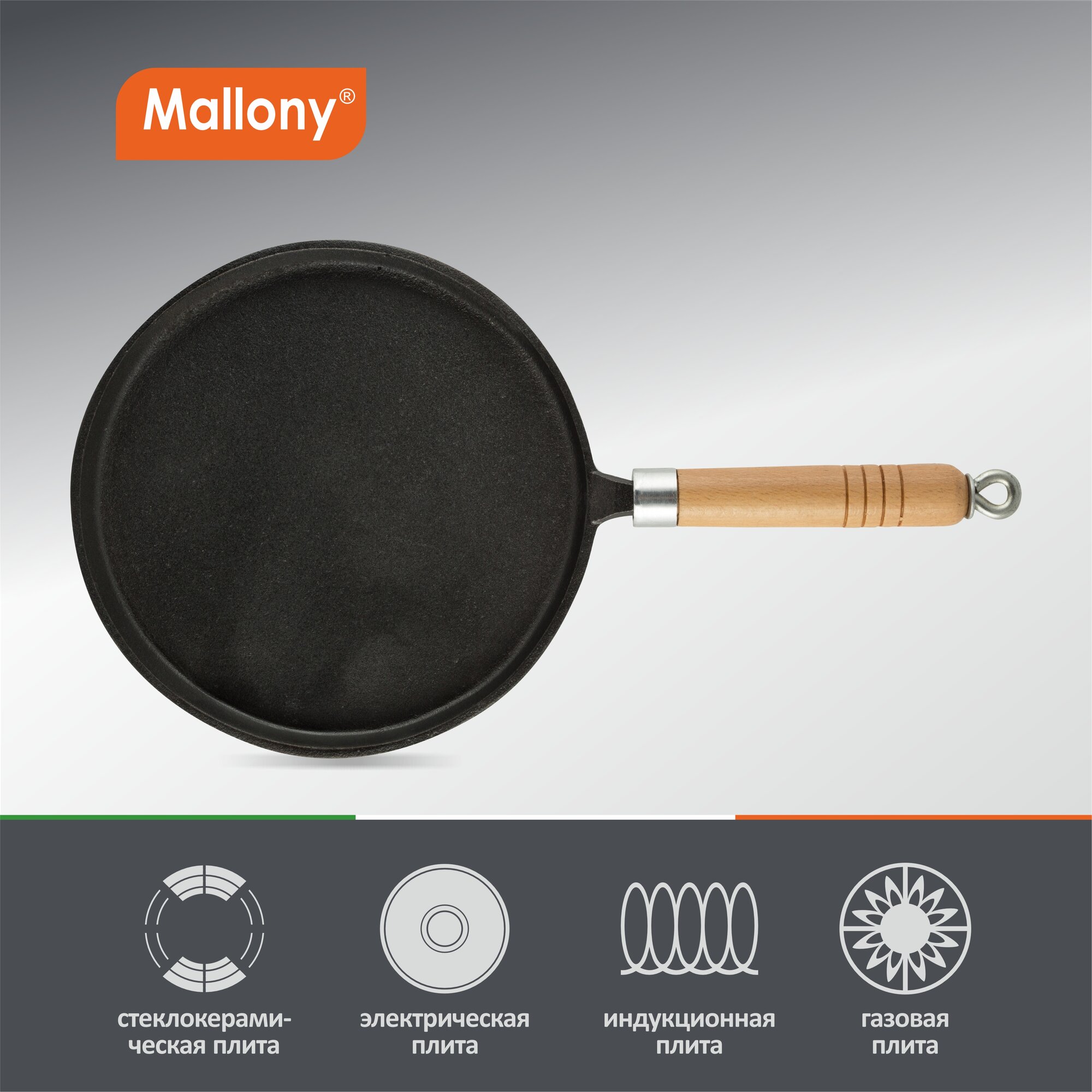 Купить Сковорода блинная Mallony , чугунная, со съемной ручкой, 23 см