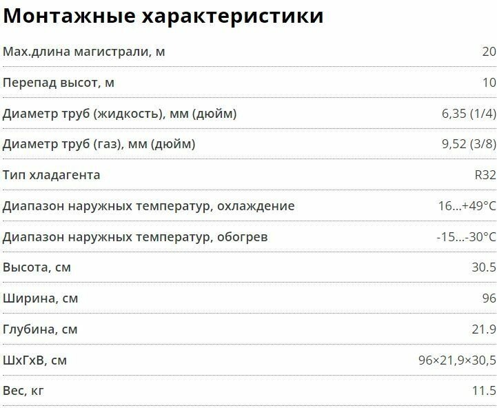 | Ширина мобильного кондиционера или внутреннего блока сплит-системы | 96 см |