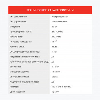 | Плюсы: | Скорость увлажнения регулируется, компактный, мы для детской брали как раз хватает, есть капсула для арома масел. |