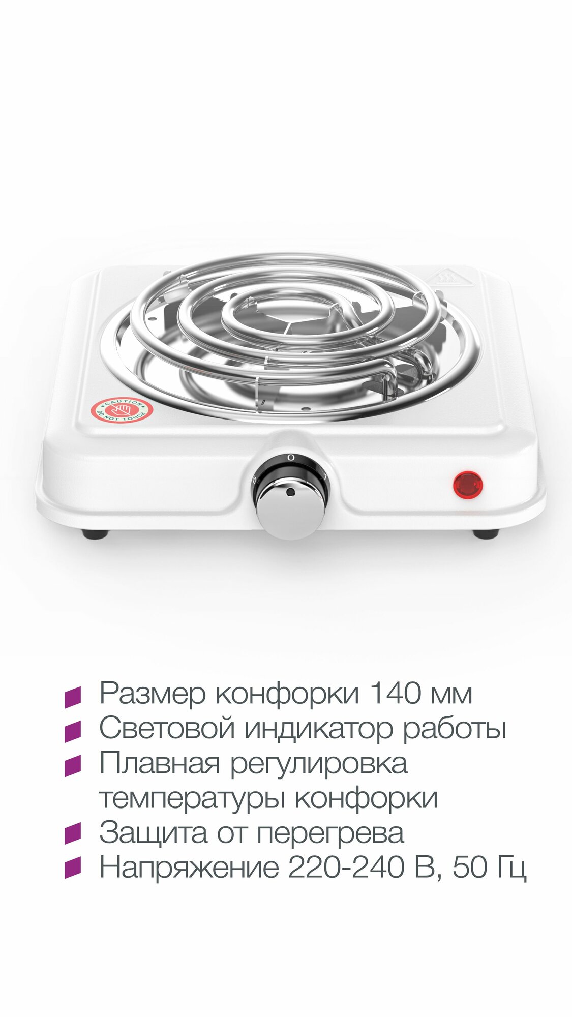 Плита электрическая Хоместар HS-1107 одна конфорка диаметром 140мм тэн механическое управление мощность 1000Вт / электроплита кухонная настольная /