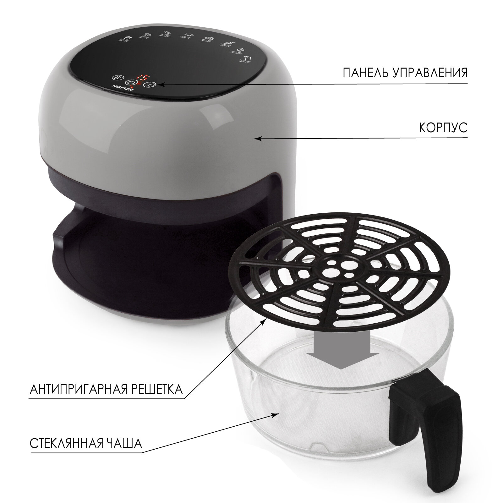 Ниже Вы можете прочитать отзывы на Аэрогриль HOTTER HX-45 , стеклянная чаша объемом 3 литра , карбоновый тэн, 1200 Вт, цвет серый, ознакомится с подробными характеристиками, посмотреть интересные обзоры и фотографии на Аэрогриль HOTTER HX-45 , стеклянная чаша объемом 3 литра , карбоновый тэн, 1200 Вт, цвет серый.