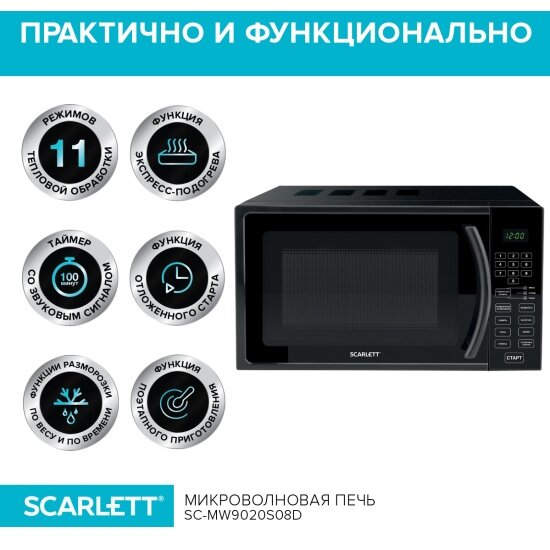 Микроволновая печь SCARLETT 20L BLACK SC-MW9020S08D интересное: