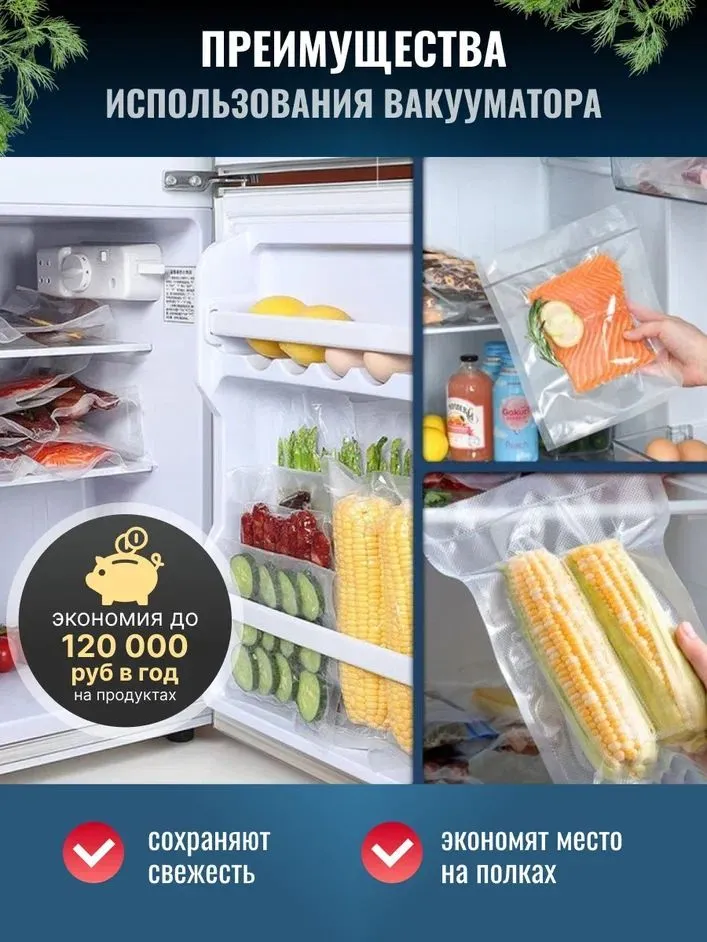 Купить Вакуумный упаковщик, вакууматор для продуктов домашний,10 пакетов в комплекте