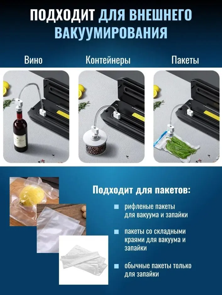 Вакуумный упаковщик, вакууматор для продуктов домашний,10 пакетов в комплекте интересное: