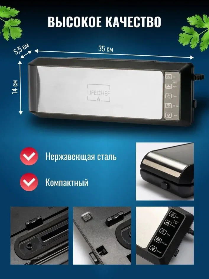 | Дополнительная информация | Нержавеющая сталь.Компактный и легкий.Подходит для разных пакетов.Подходит для внешнего вакуумирования |