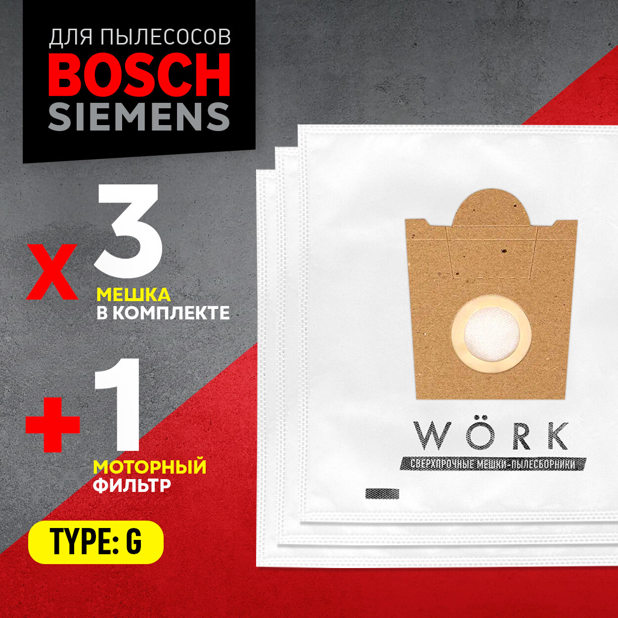 Мешки для пылесосов Bosch, Бош, Karcher, Керхер, Siemens, Тип: G, 3 шт. в комплекте. Бренд Work