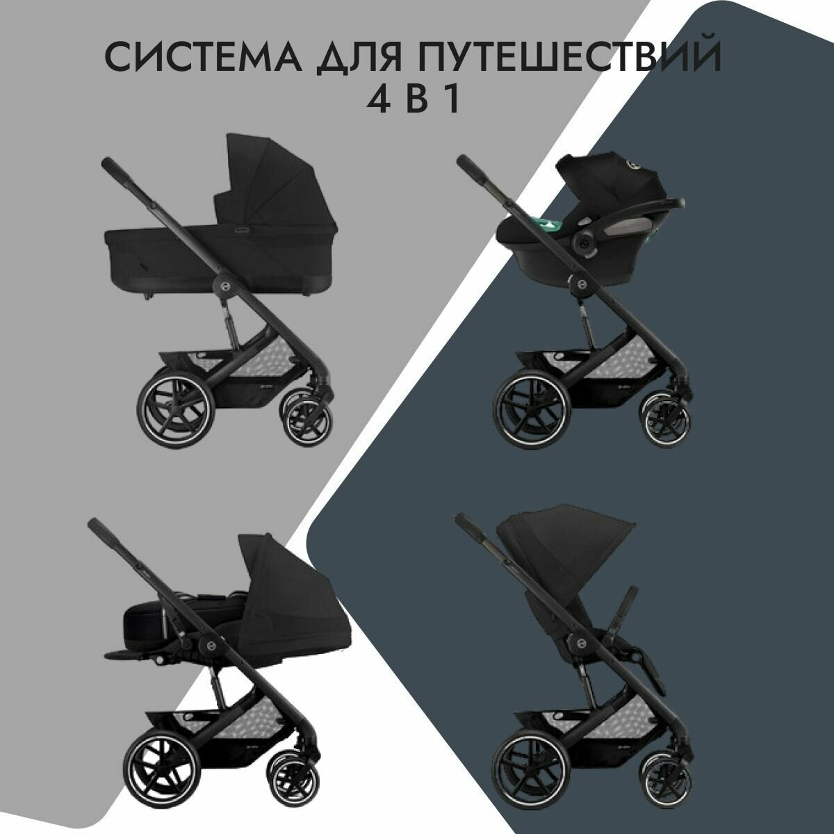 Коляска 4в1 Cybex Balios S Lux 2023 Moon Black с базой isofix (с адаптером и дождевиком)