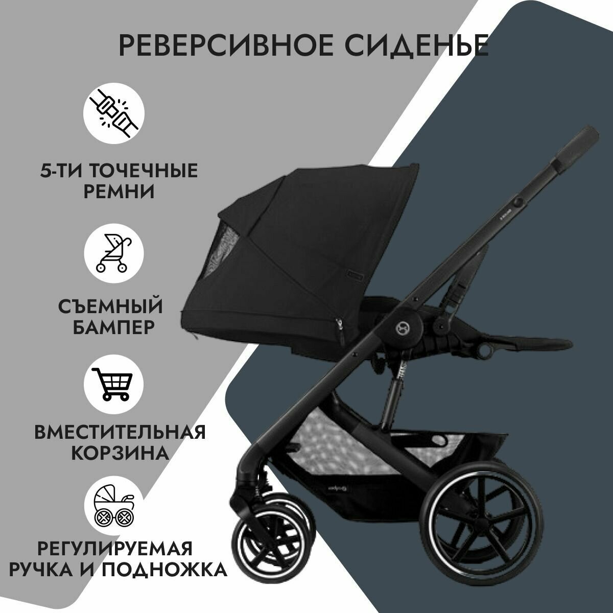 | Особенности шасси | корзина для покупок / перекидная ручка / перестановка блока лицом/спиной / регулировка высоты ручки / Ножной |