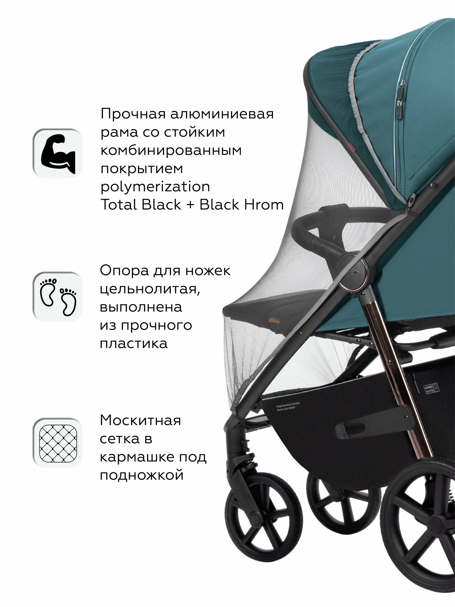 | Аксессуары в комплекте | антимоскитная сетка, бампер, держатель для бутылочки, капюшон, накидка на ноги, солнцезащитный козырек |