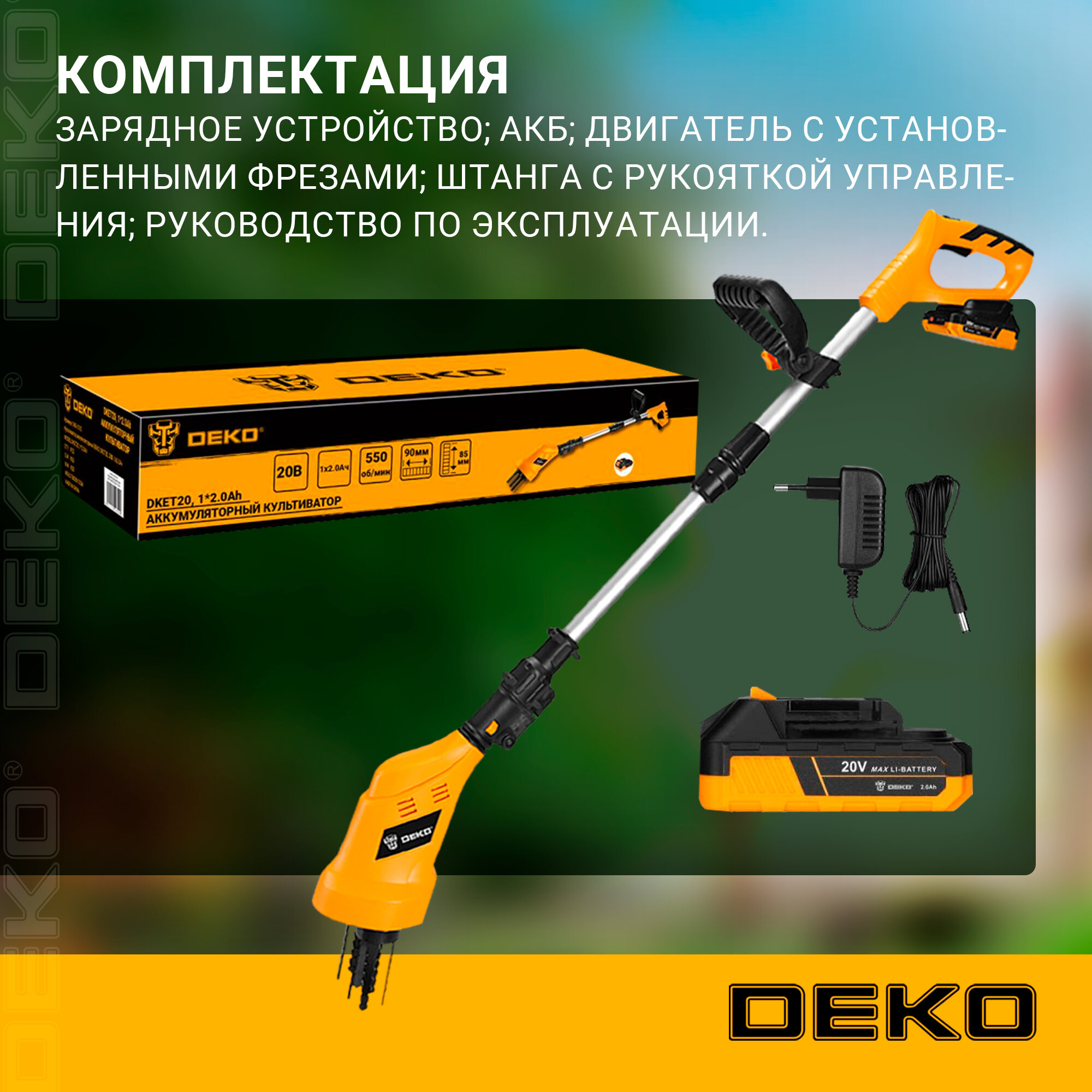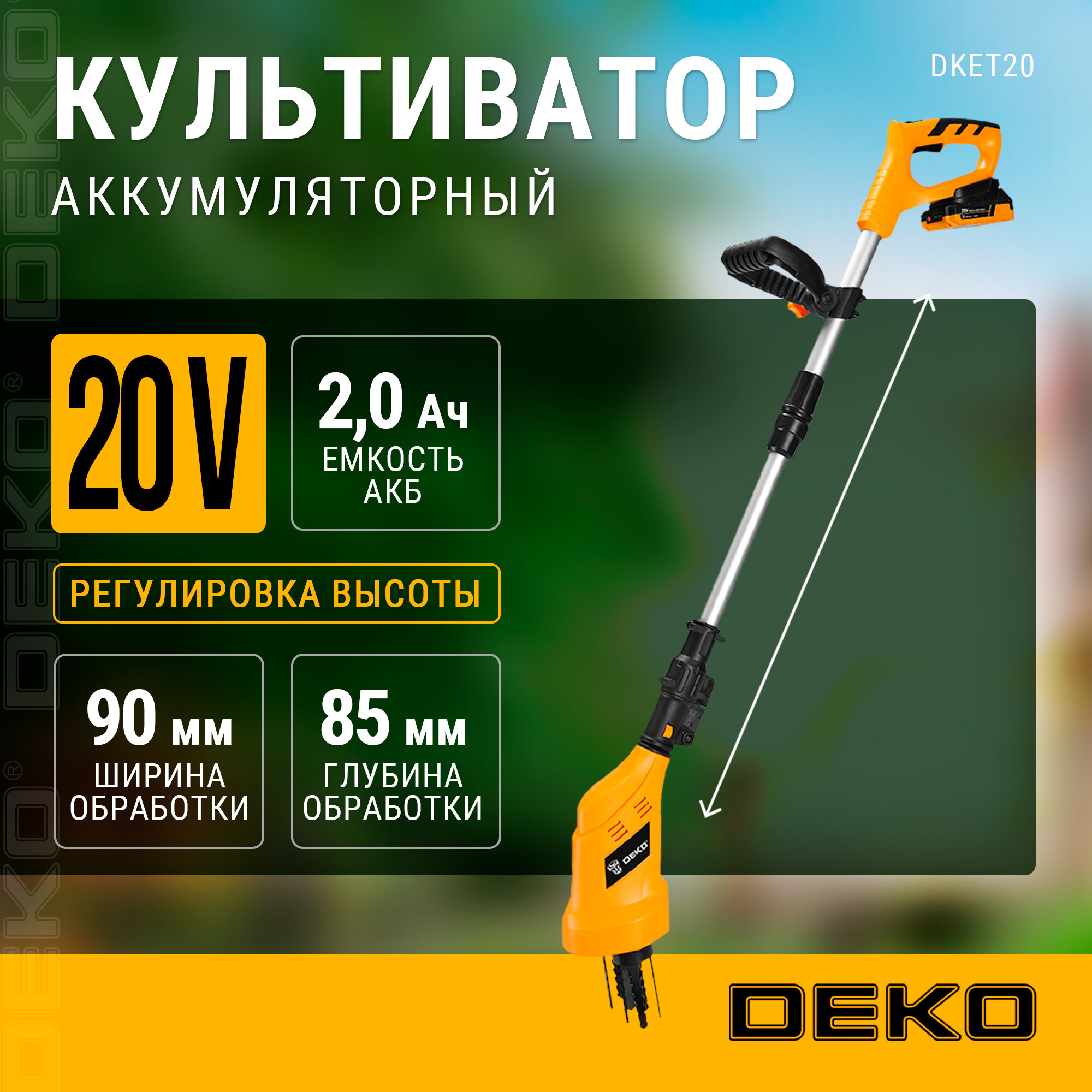 Купить Культиватор аккумуляторный DEKO DKET20, 20В, 1x2.0Ач