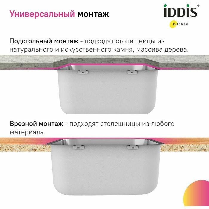 Кухонная мойка IDDIS Mate MAT49S0i77 Нержавеющая сталь интересное: