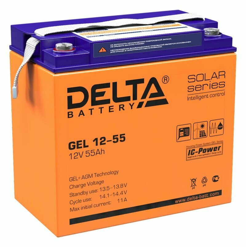 Аккумулятор Ибп 12В 55 А.ч. Delta (Gel 12-55) (228Х137х214) (Gel) DELTA battery арт. GEL1255 интересное: