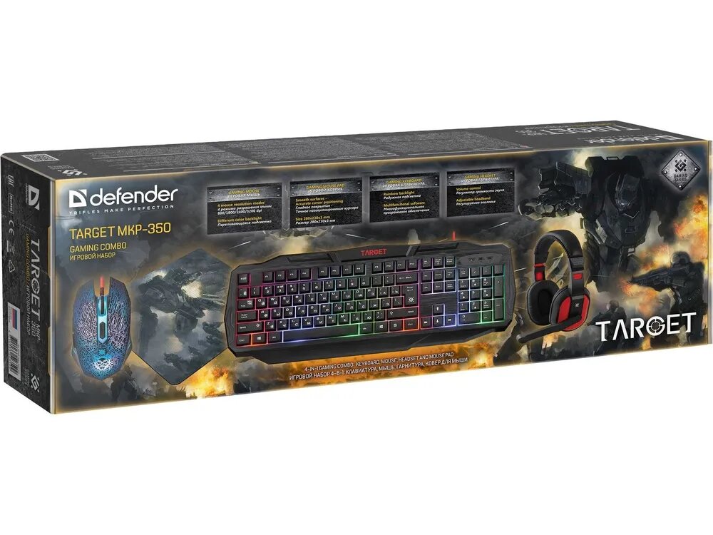 Купить Игровой набор 4-в-1 Defender Target MKP-350 (клавиатура, мышь, коврик, гарнитура)