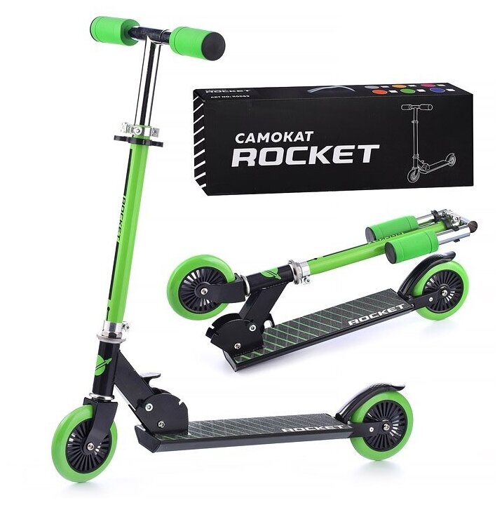 Самокат складной, двухколесный ROCKET,колеса PU/ 125 мм,ABEC 7, зеленый