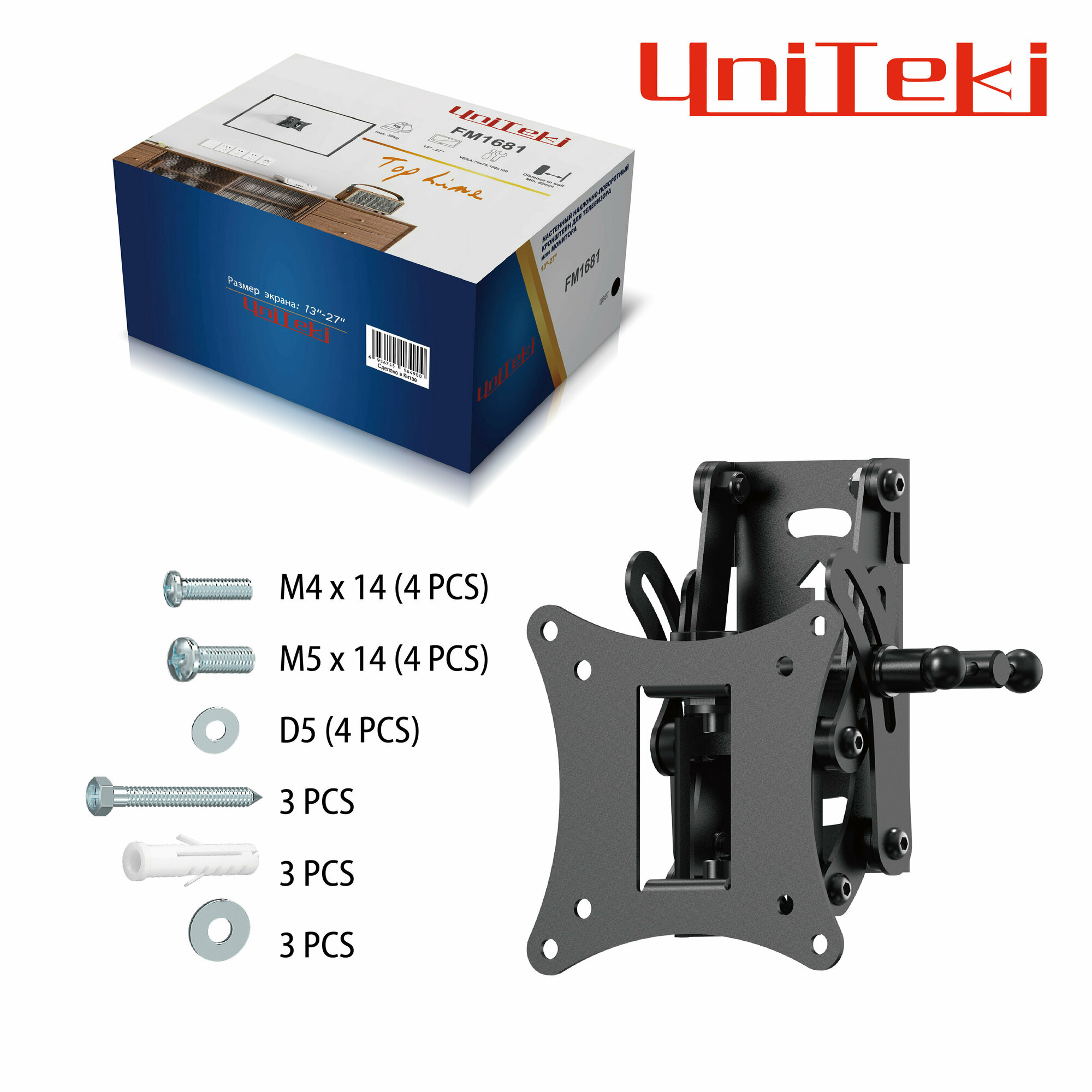 Кронштейн для телевизора на стену наклонно-поворотный с диагональю 13"-27" UniTeki FM1681,черный