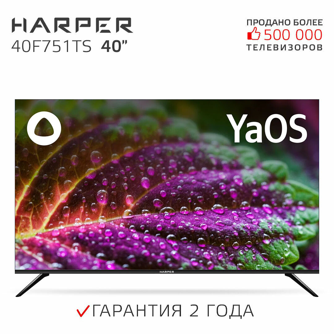 Телевизор HARPER 40F751TS, SMART на платформе Яндекс. ТВ, черный