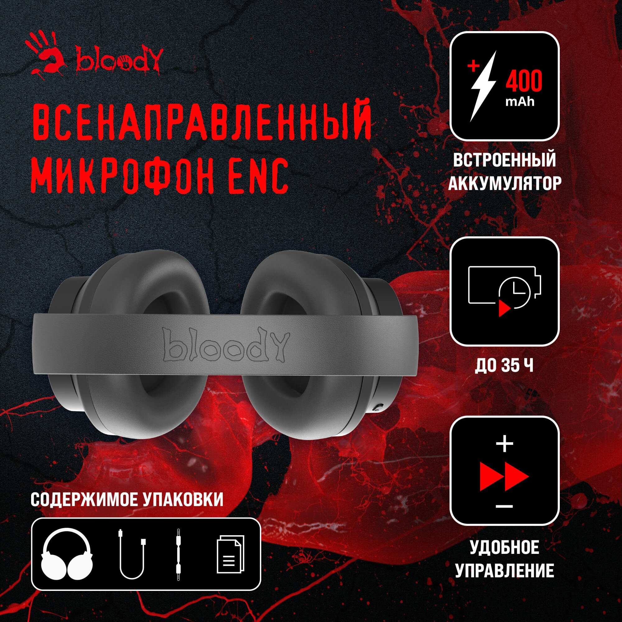 Наушники A4Tech Bloody MH390 беспроводные, с микрофоном, Bluetooth, черный