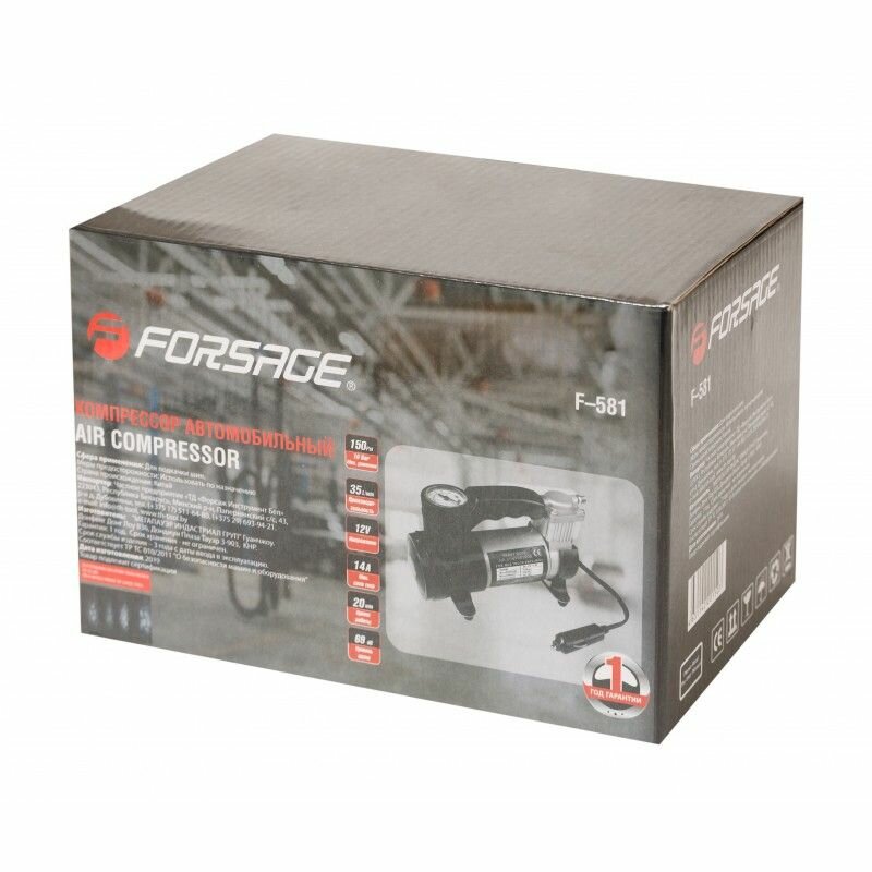 Компрессор поршневой автомобильный с фонарем F-581 "FORSAGE" (35л/мин, 15А) 12V интересное: