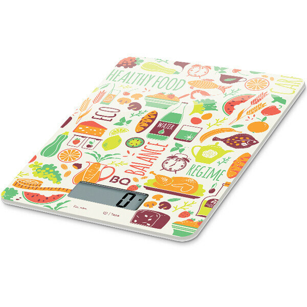 Весы кухонные BQ (БИ-КЬЮ) KS1010, электронный дисплей max вес 5кг, тарокомпенсация стекло с рисунком