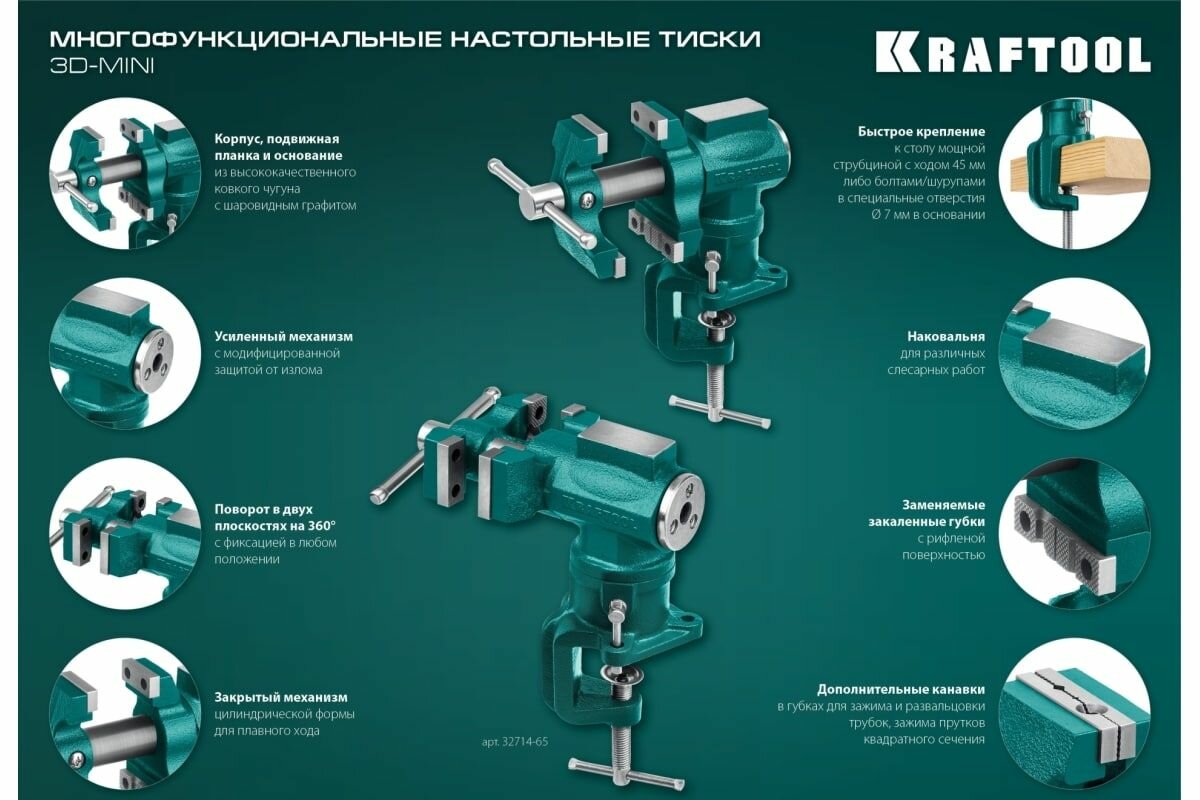 Тиски настольные многофункциональные 65 мм Kraftool 3D-MINI 32714-65 интересное: