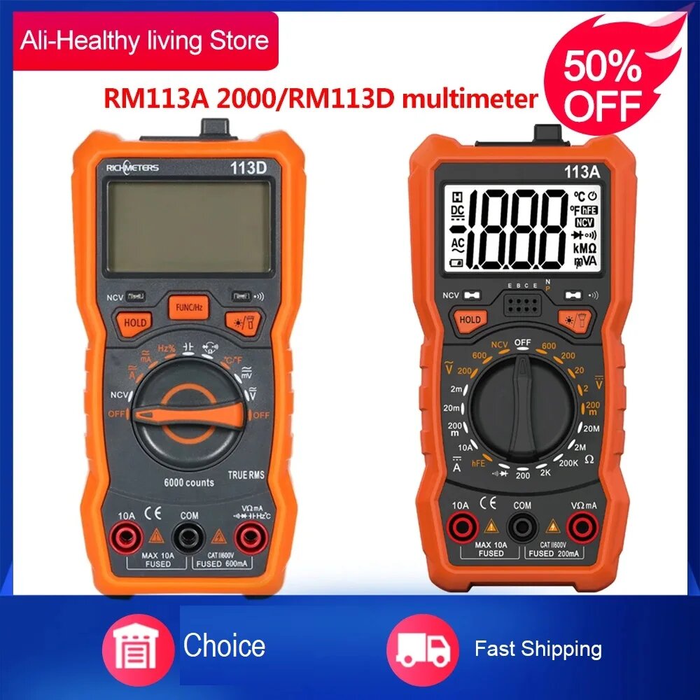 RICHMETERS RM113A NCV Цифровой мультиметр 2000 Подсчет HFE Измерительный измеритель
