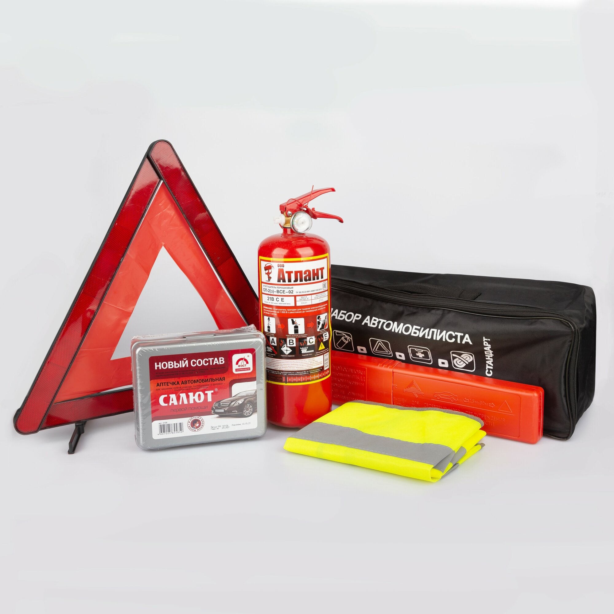| В наборе | аптечка / жилет светоотражающий / знак аварийной остановки / огнетушитель / 5 / 5 |