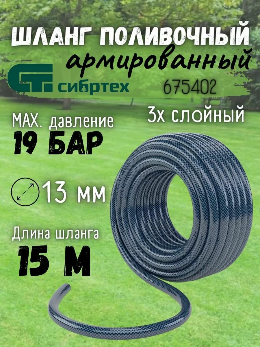 СИБРТЕХ Шланг поливочный армированный ПВХ 1/2", 15 м, урожайный// Сибртех ( 675402 )